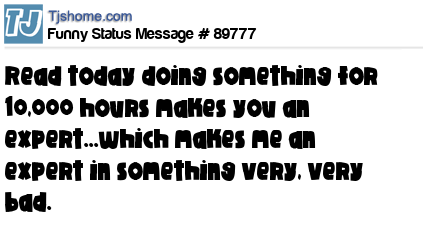 X says Read today doing something for 10,000 hours makes you an expert...which makes me an expert in something very, very bad.