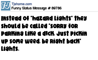 X says Instead of "hazard lights" they should be called "sorry for parking like a d!ck, just pickin up some weed, be right back" lights.