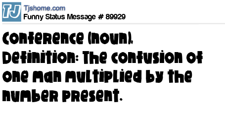 X Conference (noun), Definition: The confusion of one man multiplied by the number present.
