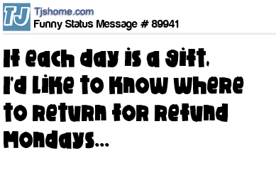 X is If each day is a gift, I'd like to know where to return for refund Mondays...