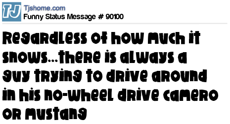 X is Regardless of how much it snows...there is always a guy trying to drive around in his no-wheel drive camero or mustang