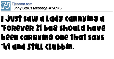 X I just saw a lady carrying a "Forever 21 bag should have been carrying one that says "49 and Still Clubbin.