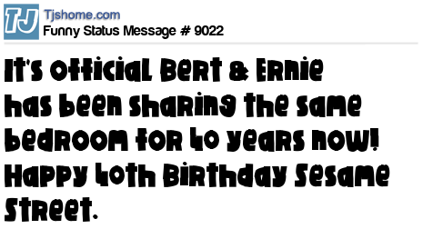 X It's official Bert & Ernie has been sharing the same bedroom for 40 years now! Happy 40th Birthday Sesame Street.
