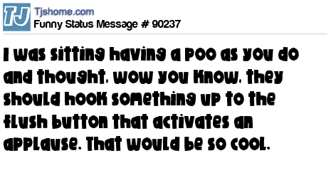 X says I was sitting having a poo as you do and thought, wow you know, they should hook something up to the flush button that activates an applause. That would be so cool.