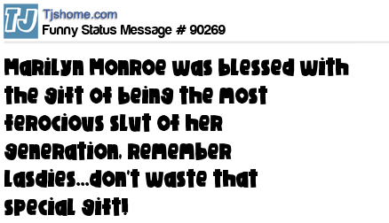 X is Marilyn Monroe was blessed with the gift of being the most ferocious slut of her generation, remember lasdies...don't waste that special gift!