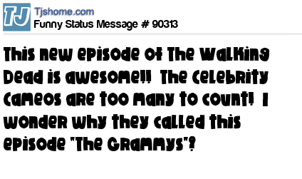 X This new episode of The Walking Dead is awesome!! The Celebrity Cameos are too many to count! I wonder why they called this episode "The Grammys"?
