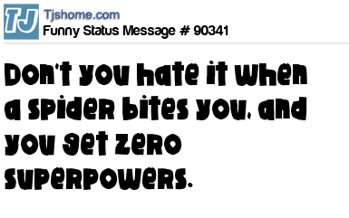 X Don't you hate it when a spider bites you, and you get zero superpowers.