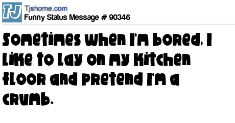 - # 107860 sometimes when I'm bored I lay on my kitchen floor and pretend I'm a crumb..