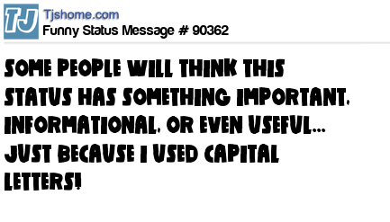 X says SOME PEOPLE WILL THINK THIS STATUS HAS SOMETHING IMPORTANT, INFORMATIONAL, OR EVEN USEFUL... JUST BECAUSE I USED CAPITAL LETTERS!