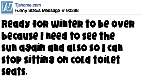X says Ready for winter to be over because I need to see the sun again and also so I can stop sitting on cold toilet seats.