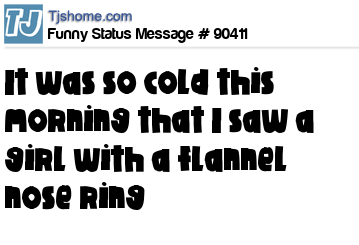 X is It was so cold this morning that I saw a girl with a flannel nose ring