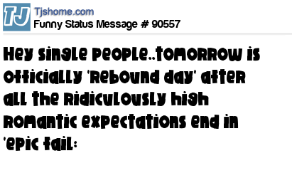 X is hey single people..tomorrow is officially 'rebound day' after all the ridiculously high romantic expectations end in 'epic fail: