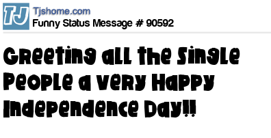 - # 192942 Just want to wish all my single friends out there a very happy Independence Day!