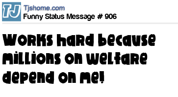 - # 100625 I work hard, because millions on welfare are depending on me.