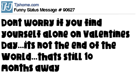 X is dont worry if you find yourself alone on Valentines Day...its not the end of the World...thats still 10 months away