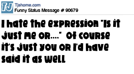 X says I hate the expression "Is it just me or...."  Of course it's just you or I'd have said it as well
