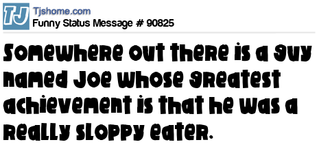 X Somewhere out there is a guy named Joe whose greatest achievement is that he was a really sloppy eater.