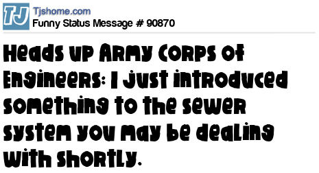 X Heads up Army Corps of Engineers: I just introduced something to the sewer system you may be dealing with shortly.