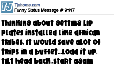X is thinking about getting lip plates installed like african tribes, it would save alot of trips in a buffet...load it up, tilt head back..start again