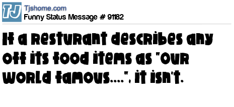 X says If a resturant describes any off its food items as "Our world famous....", it isn't.