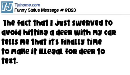 X says The fact that I just swerved to avoid hitting a deer with my car tells me that it's finally time to make it illegal for deer to text.