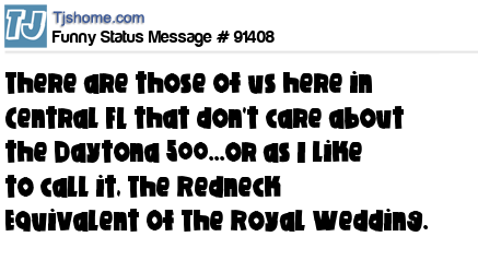 X There are those of us here in Central FL that don't care about the Daytona 500...or as I like to call it, The Redneck Equivalent Of The Royal Wedding.