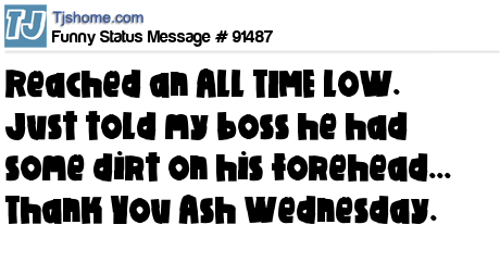 X has reached an ALL TIME LOW. Just told my boss he had some dirt on his forehead... Thank You Ash Wednesday.