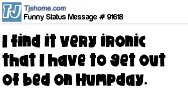 - # 43259 finds it ironic that I have to get out of bed on humpday.