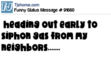 - # 91724 Goodnight.......I have to get up early to siphon gas from my Mexican neighbors lawnmower just to get to work tomorrow.