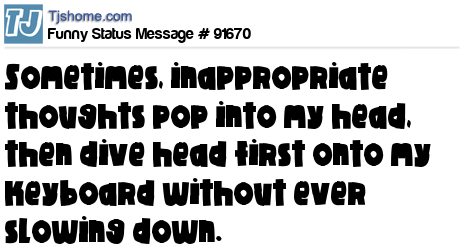 X says Sometimes, inappropriate thoughts pop into my head, then dive head first onto my keyboard without ever slowing down.