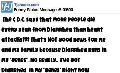 X The C.D.C. says that more people die every year from Diarrhea than heart attacks??? That's NOT good news for me and my family because Diarrhea runs in my "genes",,,No really,, I've got Diarrhea in my "genes" right now
