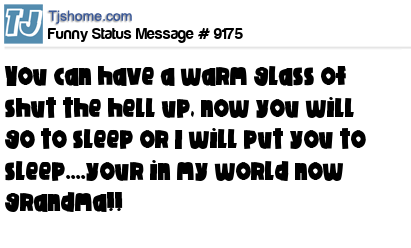 X says you can have a warm glass of shut the hell up, now you will go to sleep or I will put you to sleep....your in my world now grandma!!