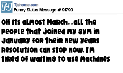 X ok its almost March....all the people that joined my gym in January for their new years resolution can stop now, I'm tired of waiting to use machines