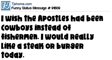 X I wish the Apostles had been Cowboys instead of fishermen. I would really like a steak or burger today.