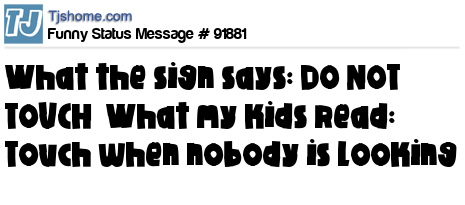 X What the sign says: DO NOT TOUCH What my kids read: Touch when nobody is looking