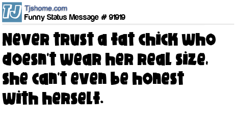 X says Never trust a fat chick who doesn't wear her real size, she can't even be honest with herself.