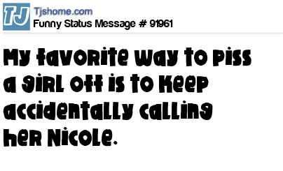 X My favorite way to piss a girl off is to keep accidentally calling her Nicole.
