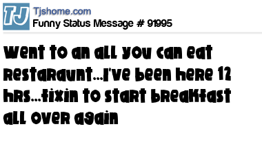 X is went to an all you can eat restaraunt...I've been here 12 hrs...fixin to start breakfast all over again