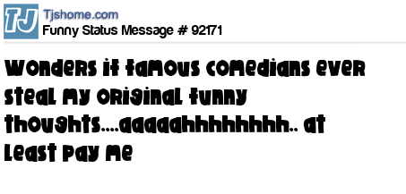 X is wonders if famous comedians ever steal my original funny thoughts....aaaaahhhhhhhh.. at least pay me