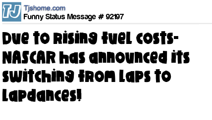 X is Due to rising fuel costs- NASCAR has announced its switching from laps to lapdances!