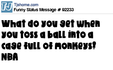 X is What do you get when you toss a ball into a cage full of monkeys? NBA
