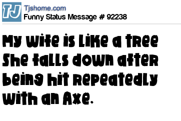 X is My wife is like a tree She falls down after being hit repeatedly with an Axe.