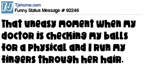 - # 104858 When my doctor is checking my balls for a physical I run my fingers through her hair. Makes it less embarrassing...