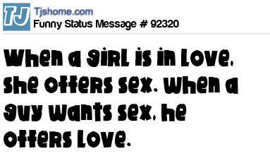X is When a girl is in love, she offers sex. when a guy wants sex, he offers love.