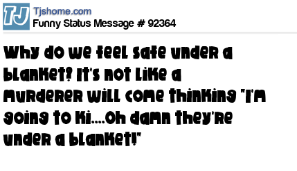 - # 67756 Why do we feel safe under blankets? It's not like a murderer will come in thinking "I'm gonna ki..- ahh damn! She's under a blanket."
