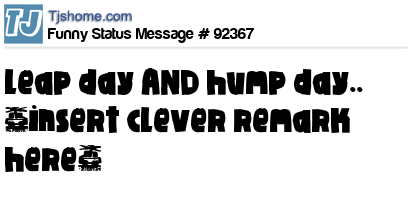 - # 92418 Since it's a Leap Day and also a Hump Day.....I wish Obama would take a flying Leap up a camels ass so far he hit's the Hump!