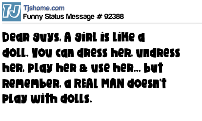 X says Dear guys, A girl is like a doll. You can dress her, undress her, play her & use her... but remember, a REAL MAN doesn't play with dolls.