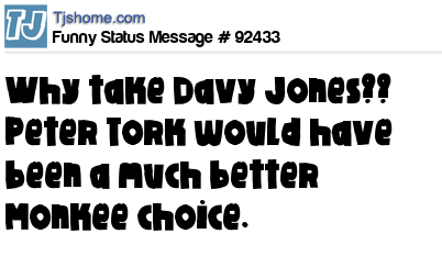X is Why take Davy Jones?? Peter Tork would have been a much better Monkee choice.
