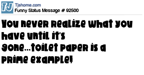 - # 88693 You never realize what you have till its gone... Toilet paper is a good example.
