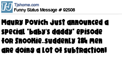 X  Maury Povich just announced a special "baby's daddy" episode for Snookie..suddenly 284 men are doing a lot of subtraction!